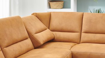 Dank der weichen Kaltschaumpolsterung auf stützender Wellenunterfederung sitzen Sie auf der Couch sehr bequem. Preisgleich ist die Polsterecke auch mit einer festeren Federkern- und gegen Aufpreis sogar mit einer luxuriösen Boxspringpolsterung erhältlich. Sie hat eine Sitzhöhe von ca. 46 cm und eine Sitztiefe von ca. 54 cm.