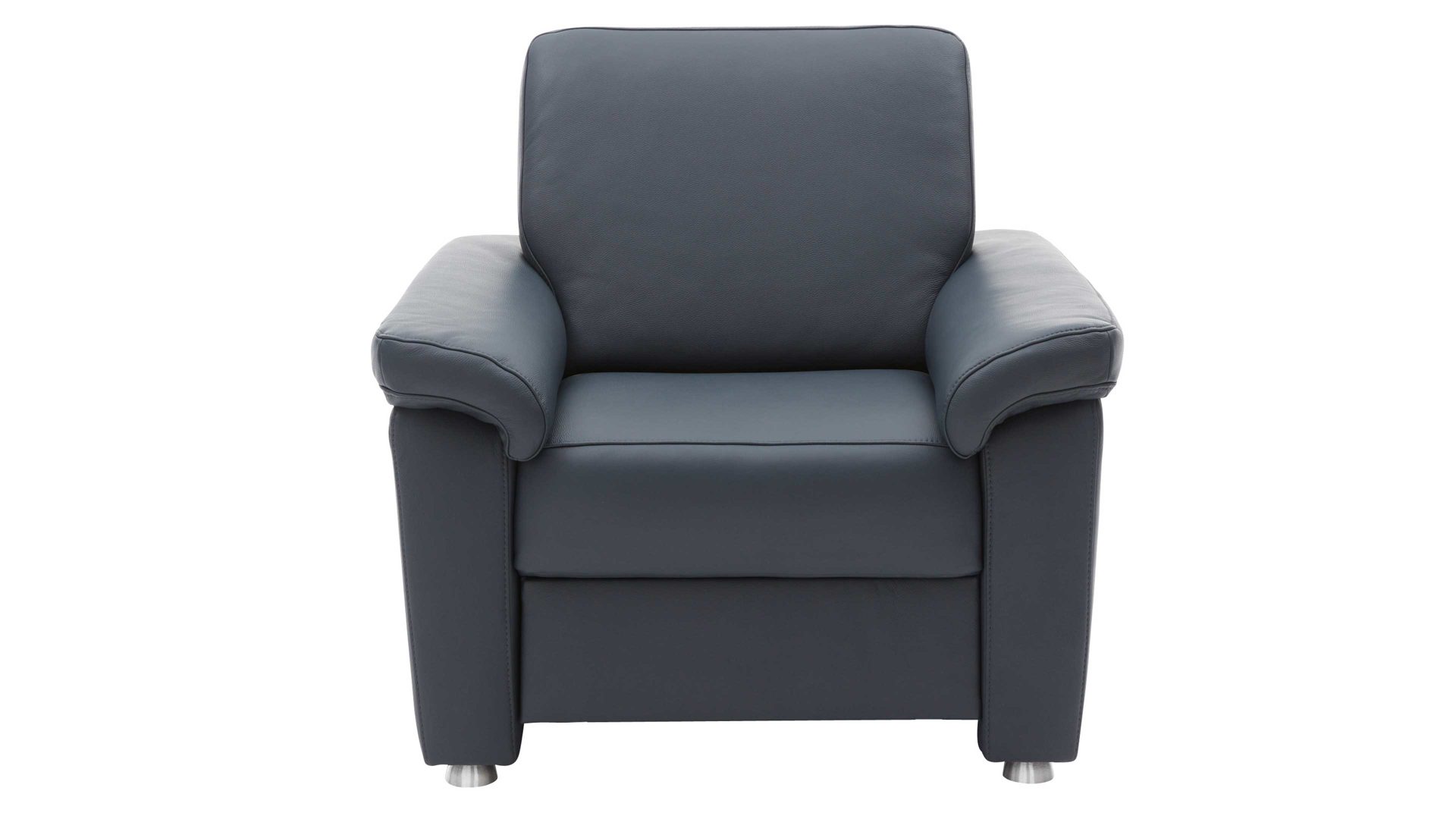 Der Polstersessel aus dem Modulmaster-Programm MM-PN1059 bringt moderne Eleganz und jede Menge Komfort in Ihr Wohnzimmer. Optisch begeistert der nachtblau pigmentierte Lederbezug. Matte Metallfüße runden das ansprechende Design stilsicher ab. Die Rückseite des Einzelsessels ist im Originalstoff bezogen.