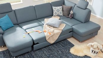 • Die Abbildung zeigt ein Wohnbeispiel, welches auch Dekoration sowie separat erhältliches Zubehör enthält. Im Lieferumfang enthalten ist eine motorische Funktion für Canapés.