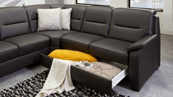 Für hohen Komfort sorgen neben der feinen Haptik des Leders die Superbonnellfederkernpolsterung mit hochwertigem Polyätherschaum auf einer stützenden Wellenunterfederung im Sitz und die mit softem Kaltschaum gepolsterte Rückenlehne.