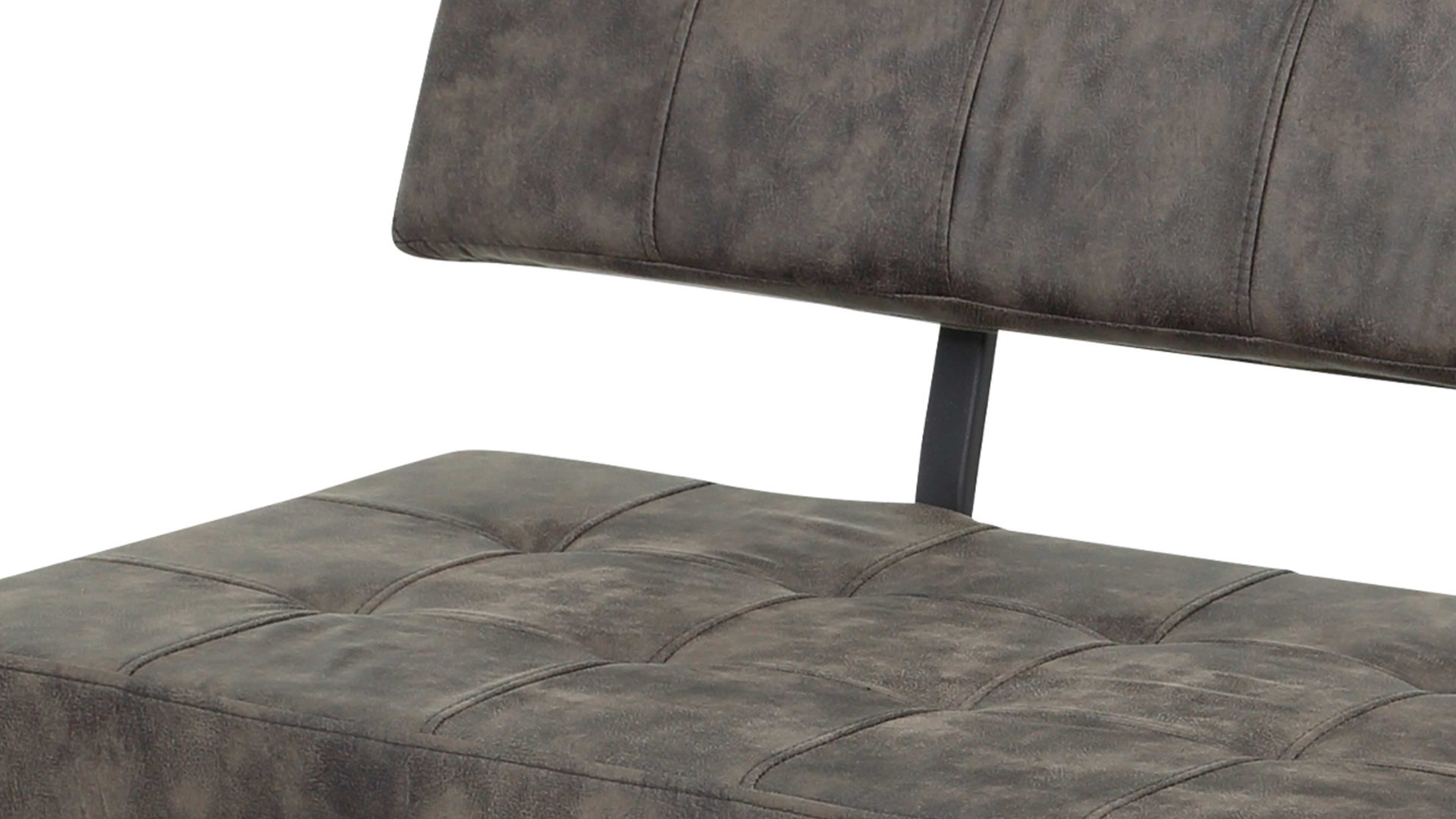 Gefertigt wurde sie aus einem pulverbeschichteten Metallgestell in Anthrazit sowie einem braungrauen Mikrofaserbezug im Vintage-Look. Die Steppung der Diningbank erweist sich als weiteres schönes Detail. Mit Maßen von ca. 140 x 61 x 93 cm (LxHxT) bietet dieses fest gepolsterte Sitzmöbel ausreichend Platz für zwei bis drei Personen, die in aller Ruhe miteinander plaudern oder gemütlich zusammen Essen möchten.
