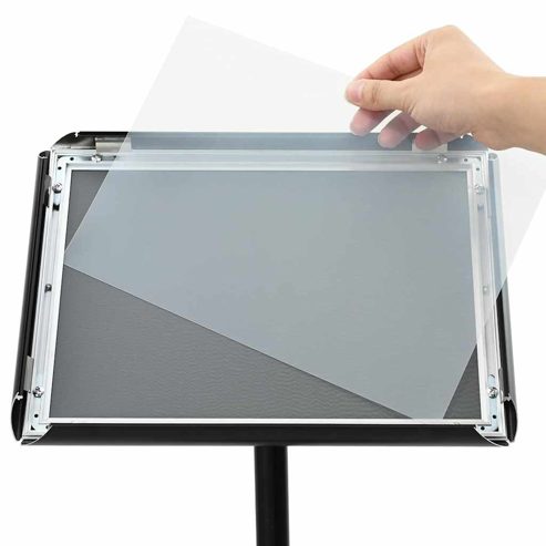 Der robuste Podest-Plakatständer ist die perfekte Lösung für geschäftliche und industrielle Umgebungen. Er kombiniert Funktionalität mit Stil und bietet ein modernes, minimalistisches Design mit klaren Linien. Mit seinem schicken schwarzen Finish fügt sich dieser Podestständer problemlos in jedes Büro oder jeden Verkaufsraum ein. Ideal für die Präsentation von Werbematerialien oder wichtigen Infos spricht er Profis an, die eine zuverlässige und gut aussehende Ausstellungsoption suchen. Hochwertige Materialien: Aus erstklassigem Aluminium und PVC gefertigt, ist dieser Ständer sowohl wasser- als auch UV-beständig. Diese Materialwahl sorgt dafür, dass er auch unter schwierigen Bedingungen seinen Look und seine Qualität behält und eine langlebige Lösung für Firmen bietet, die stabile und effektive Displays brauchen. Verstellbare Höhe: Dank eines einfach einstellbaren Mechanismus können Nutzer die Höhe des Ständers problemlos anpassen, um verschiedenen Displayanforderungen gerecht zu werden. Diese Flexibilität gibt Organisationen die Möglichkeit, sich an unterschiedliche Formate zu gewöhnen, was die Nutzung und Vielseitigkeit in diversen Anwendungen erhöht. Robustes Design: Mit einer schweren Metallbasis sorgt der Ständer für eine außergewöhnliche Stabilität und Langlebigkeit. Seine elegante Form steigert seinen modernen Charme und passt perfekt in jedes Büro oder Verkaufsraum. Die Anzeigematerialien bleiben sicher an ihrem Platz, was eine stilvolle Präsentation wichtiger Inhalte garantiert. Indoor & Outdoor Vielseitigkeit: Dieser Podestständer ist für den Einsatz in verschiedenen Umgebungen gedacht und funktioniert sowohl drinnen als auch draußen einwandfrei. Diese Anpassungsfähigkeit hilft Unternehmen, die Lösungen benötigen, die Wetterbedingungen standhalten, ohne dabei an Stil oder Funktionalität einzubüßen. Einfache Wartung: Die glatte Oberfläche des Ständers ist resistent gegenüber Schmutz und Dreck und benötigt nur gelegentliches Abwischen mit einem trockenen Tuch, um in Form zu bleiben. Diese einfache Pflege verlängert seine Lebensdauer und garantiert, dass er ein wertvolles Asset für verschiedene geschäftliche Zwecke bleibt. ** Farbe: Schwarz ** Material: Aluminium und PVC ** Gesamtabmessungen: 33 x 33 x 128,5 cm (L x B x H) ** Gewicht: 2,83 kg ** Wasserdichte Materialien ** UV-beständige Materialien ** Langlebig ** Höhenverstellbar ** Robuster Metallfuß ** 360° drehbarer Bildschirm ** Verstellbare Min/Max Maße: 98-128,5 cm ** Drinnen & Draußen: Für Innen- und Außenbereich ** Lieferumfang: ** 1 x Podest-Posterständer ** Montage erforderlich: Ja