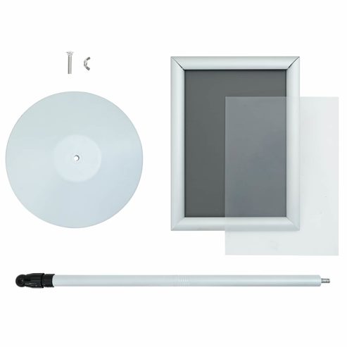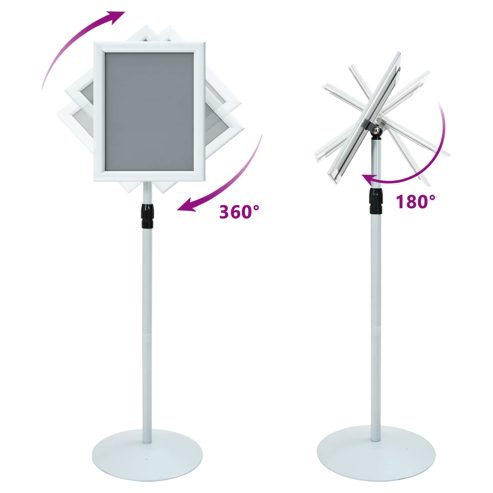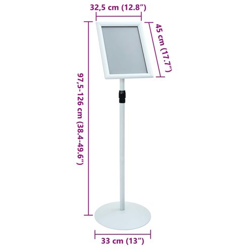 Der langlebige Podest-Plakatständer ist eine flexible Lösung, die speziell für geschäftliche und industrielle Umgebungen entwickelt wurde. Dieses moderne Ausstellungsstück kombiniert Funktionalität mit Stil und verfügt über ein minimalistisches Design, klare Linien und hohe Funktionalität. Mit seiner eleganten schwarzen Oberfläche integriert sich dieser Podestständer mühelos in jedes Büro oder jeden Einzelhandelsbereich. Perfekt zum Präsentieren von Werbematerialien oder wichtigen Hinweisen, spricht er Profi an, die nach einer verlässlichen Ausstellungsoption suchen, die Form und Funktion einfach verbindet. Hochwertige Materialien: Der Ständer ist aus hochwertigem Aluminium und PVC gefertigt und ist sowohl wasser- als auch UV-beständig. Diese Materialwahl sorgt dafür, dass er sein Aussehen und seine Stabilität auch bei extremen Wetterbedingungen behält und ein langlebiges Werkzeug für Firmen bietet, die stabile und effektive Displays brauchen. Verstellbare Höhe: Der manuell verstellbare Mechanismus ermöglicht es Nutzern, die Höhe des Ständers ganz einfach an die unterschiedlichen Displaybedürfnisse anzupassen. Diese Flexibilität hilft Organisationen, sich an verschiedene Displaygrößen und -formate anzupassen und steigert so die Gesamtnützlichkeit und Vielseitigkeit für diverse Anwendungen. Robustes Design: Dank einer schweren Metallbasis garantiert der Ständer außergewöhnliche Stabilität und Robustheit. Seine schlanke Form verstärkt die moderne Ästhetik und fügt sich nahtlos in Büros oder Verkaufsräume ein. Ausstellungsunterlagen bleiben fest am Platz, was eine ansprechende Präsentation wichtiger Informationen sicherstellt. Innen- und Außeneinsatz: Der Podestständer ist für den Einsatz in verschiedenen Umgebungen konzipiert und funktioniert sowohl drinnen als auch draußen wunderbar. Diese Vielseitigkeit ist ideal für Unternehmen, die Lösungen suchen, die wechselhaftes Wetter aushalten und dabei visuelle Anziehungskraft und Praktikabilität behalten. Einfache Wartung: Mit einer glatten Oberfläche, die Schmutz und Dreck abweist, reicht es, den Ständer gelegentlich mit einem trockenen Tuch abzuwischen, um seinen Glanz zu behalten. Diese einfache Pflege verlängert die Lebensdauer und sorgt dafür, dass er ein zentraler Bestandteil für verschiedene gewerbliche Zwecke bleibt. ** Farbe: Silber ** Material: PVC und Stahl ** Gesamtabmessungen: 33 x 33 x 126 cm (L x B x H) ** Gewicht: 3 kg ** Höhenverstellbar ** Robuster Metallbasis ** Langlebige Nutzung ** Einfach zu wechselnde Poster ** 360° nach links und rechts drehbar ** 180° nach oben und unten neigbar ** Breite Anwendung ** Klarer Posterdisplay ** Verstellbare Min/Max Maße: 97,5-126 cm ** Rahmenmaterial: Aluminium ** Für Innen- und Außenbereich ** Lieferumfang: ** 1 x Schildhalterständer ** Montage erforderlich: Ja