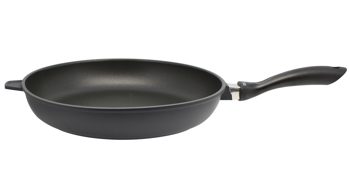 Die Pfannenaußenseite weist eine schwarze PTFE Beschichtung auf. Mit einer Bodenstärke von ca. 4,6 mm und einer Wandstärke von ca. 1,8 mm ist die Bratpfanne angenehm leicht, aber dennoch stabil. Sie eignet sich für alle Herdarten, auch für Induktion. Weitere Artikel der Serie Alucast sind ebenfalls im Shop bestellbar.