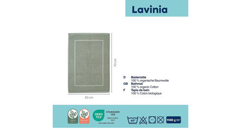 Verleihen Sie Ihrem Badezimmer einen Hauch von Luxus mit diesem hochwertigen hellgrauem Badvorleger aus 100 % nachhaltiger, organischer Baumwolle. Die weiche Haptik und das dichte Material mit 1100 g/m² sorgen für ein angenehmes Gefühl unter den Füßen und eine hohe Saugfähigkeit. Erhältlich in verschiedenen Farben und zwei praktischen Größen, passt er perfekt in jedes Badezimmer. Jetzt entdecken!Badvorleger Lavinia, Maße ca. 50 x 70 cm (BxL).