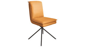 sonnengelber Lederbezug mit einer beigen Kontrastnaht und mattschwarzen Metallfüßen
