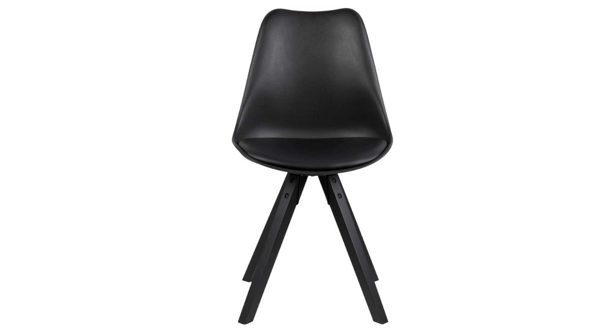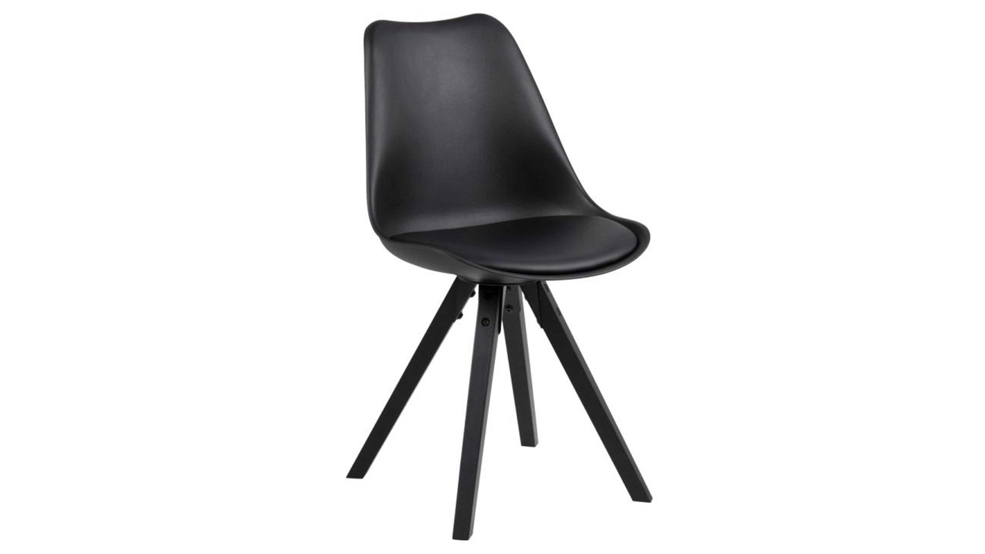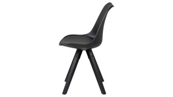 Mit diesem formschönen Stuhl holen Sie sich den angesagten skandinavischen Einrichtungsstil in Ihr Esszimmer. Dort fasziniert der Schalenstuhl mit seinem einzigartigen Retro-Look und dem herrlichen Farbton Schwarz. Zum einen sind die Füße aus schwarz lackiertem Holz gefertigt und zum anderen verfügt das Sitzmöbel über eine schwarze Sitzschale mit schwarzem Kunstlederbezug.