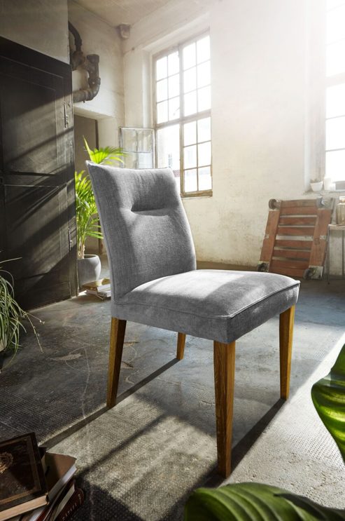 Die massive geölte Wildeiche verleiht dem Esszimmerstuhl einen natürlichen Charme und sorgt für eine robuste und langlebige Konstruktion. Die komfortable Sitzpolsterung ermöglicht stundenlanges Sitzen ohne Unannehmlichkeiten.