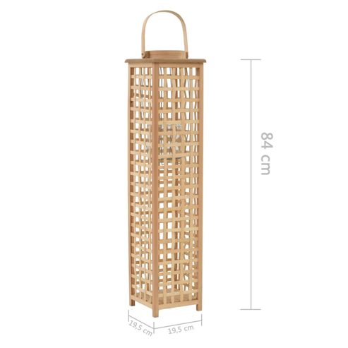 Unser hängender Kerzenhalter hat ein romantisches Erscheinungsbild, das eine großartige Ergänzung für Ihren Garten, Ihre Terrasse, Ihre Veranda, etc. sein wird. Er ist die ideale Wahl für eine Vielzahl von Veranstaltungen, wie Hochzeiten, Festessen, Partys, Feiern, etc. Hergestellt aus natürlichem, starkem Bambus, ist diese Kerzenlaterne für den Außeneinsatz geeignet. Der innere Glasbehälter bietet einen sicheren und stabilen Schutz für die Kerze. Mit dem mitgelieferten Bambusgriff lässt sie sich leicht aufhängen, bei Bedarf auch freistehend. ** Farbe: Natur ** Material: Bambuslaterne & Kerzenglas ** Abmessungen des Laternenhalters: 19,5 x 19,5 x 84 cm (L x B x H) ** Bambusbreite: 10 mm ** Glasbehälter-Durchmesser: 12 cm ** Mit Tragegriff ** Wird entweder freistehend oder am Bambusgriff aufgehängt