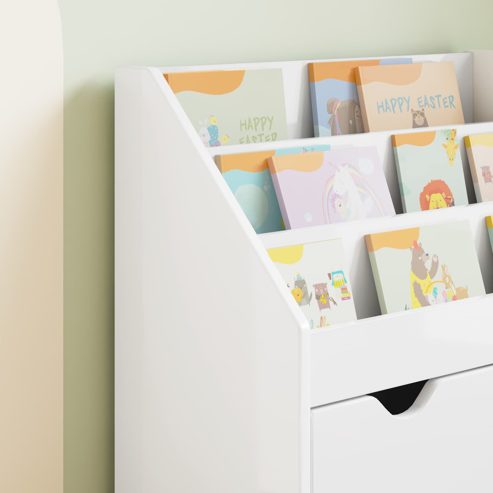 Das coole Bücherregal für Kinder ist ein klasse Stück, das einfach und praktisch designed wurde – die perfekte Ergänzung für jedes Kinderzimmer. Die klaren Linien und die glatte Oberfläche bringen einen eleganten Touch, der zu vielen Wohnstilen passt, egal ob Schlafzimmer, Spielzimmer oder Büro. Robustes Holzwerkstoff: Das Regal besteht aus stabilem Holzwerkstoff, der für seine Langlebigkeit bekannt ist. Die glatte Oberfläche sorgt für einen schicken Look, sodass es über Jahre hinweg ein Hingucker im Kinderzimmer bleibt. Viel Stauraum: Mit cleveren Aufbewahrungslösungen bietet das Regal Fächer und Schubladen für eine top Organisation von Büchern und kleinen Spielzeugen. So nutzt man den Platz optimal, ohne dass es zu voll wird. Freistehendes Design: Es kann unabhängig stehen, was flexible Platzierung in jedem Raum ermöglicht, ganz ohne Wandhalterung. Das vielseitige Design passt auch in kleinere Räume. Kinderfreundliche Merkmale: Gedacht für die kleinen Nutzer bietet das Regal leicht erreichbare Regale, die dazu anregen, selbstständig zu sein. Die sanften Kurven und die stabile Basis minimieren mögliche Gefahren und schaffen eine sichere Umgebung für eure Kleinen. Einfache Montage: Um das Regal aufzubauen, braucht man nur ein paar einfache Werkzeuge wie einen Schraubendreher. Zu zweit ist der Zusammenbau schnell erledigt, was für zusätzliche Sicherheit sorgt, sodass es stabil steht. Der Aufbau ist ganz einfach und passt zu jedem Einrichtungsstil. ** Farbe: Hochglanz Weiß ** Material: Holzwerkstoff ** Gesamtabmessungen: 60 x 29,5 x 69 cm (L x B x H) ** Gewicht: 18,44 kg ** Langlebig ** mit 1 Schublade ** Max. Gewicht: 15 kg pro Regal ** Nur für den Innenbereich ** Lieferumfang: ** 1 x Kinderregal ** Montage erforderlich: Ja