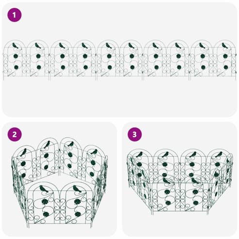 Dieser moderne Gartenzaun verbindet Style und Funktionalität und bringt eine luftige Atmosphäre in deinen Außenbereich. Mit seinem rustikalen Charme sorgt er dafür, dass er perfekt in Gärten und auf Terrassen integriert ist, während das rechteckige Spalierdesign einen tollen Hintergrund für Outdoor-Veranstaltungen bietet. Er eignet sich super für draußen, und die glatte, undurchsichtige Textur sieht nicht nur gut aus, sondern ist auch langlebig. Dekorative Intarsien und die spezielle Beschichtung geben ihm eine elegante Note, ideal für Hausbesitzer, die ihren Garten aufpeppen wollen. Robuste Eisenstruktur Hergestellt aus langlebigem Eisen, bietet dieser Gartenzaun die perfekte Mischung aus Stabilität und Style. Der Eisenrahmen ist eine starke Barriere und hat gleichzeitig einen beliebten rustikalen Charme, der gut zu verschiedenen Gartenstilen passt. Zudem sorgt das Design für Stabilität und eine lange Lebensdauer, sogar bei schlechtem Wetter. Eleganter Vliesstoff Der zusätzlich verwendete Vliesstoff trägt zum schickeren Aussehen des Zauns bei und hat auch praktische Vorteile. Diese Schicht verbessert die Optik des Zauns und macht ihn widerstandsfähiger gegen Witterungseinflüsse. Seine glatte Oberfläche erfordert wenig Pflege und verbindet Schönheit mit Nutzerfreundlichkeit für Gartenfreunde, die ihren Außenbereich gestalten wollen. Dekoratives Spaliermuster Das auffällige Spalierdesign ist ein echter Hingucker und ist ordentlich in die Zaunstruktur integriert. Dieser offene Rahmen ermöglicht es Pflanzen, elegant hindurchzuwachsen und schafft eine grüne Kulisse, die Leben und Tiefe in deinen Terrassen- und Gartenbereich bringt. Rustikale Ästhetik Dieser Zaun, der mit rustikalem Charme designt ist, feiert die natürliche Schönheit. Seine ästhetische Qualität macht ihn zum Highlight, das deinen Garten zu einer stilvollen Oase verwandelt. Der rustikale Akzent ist ideal für alle, die Außenbereiche suchen, die echt und organisch wirken sollen. Einfache Wartung Die Pflege des Zauns ist easy. Folge den Pflegehinweisen, bürste den trockenen Schmutz einfach ab und wische ab und zu mit einem feuchten Tuch drüber, um ihn sauber zu halten. Diese unkomplizierte Wartung sorgt dafür, dass er lange schön und funktional bleibt. ** Farbe: Grün ** Oberfläche: Angestrichen ** Gesamtabmessungen: 308,5 x 54,5 x 0,3 cm (L x B x H) ** Dekorative Intarsien ** Nur für den Außenbereich