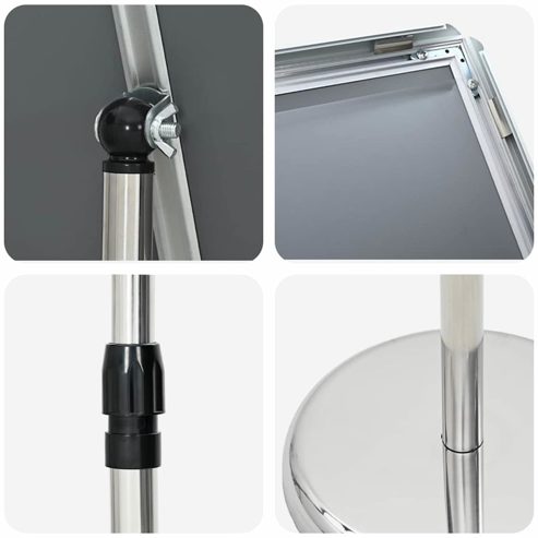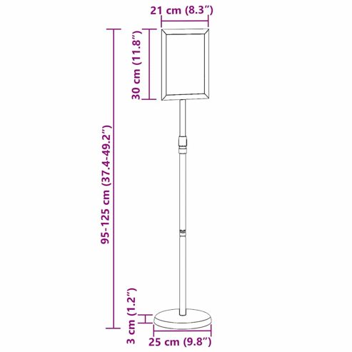 Dieser moderne Messestand ist für Flexibilität und Anpassungsfähigkeit in unterschiedlichen Umgebungen gemacht. Sein elegantes, zeitgemäßes Design passt gut in professionelle Räume und steigert die visuelle Anziehungskraft von Präsentationen und Ausstellungen. Mit dem höhenverstellbaren Design kann der Stand an verschiedene Bedürfnisse und Zielgruppen angepasst werden, was ihn zu einem unverzichtbaren Element für Unternehmen und Eventplaner macht. Hochwertige Aluminiumkonstruktion: Dieser Messestand aus hochwertigem Aluminium ist langlebig und hat ein modernes, schlankes Aussehen. Der robuste Rahmen ist ideal für häufige Nutzung und sorgt dafür, dass der Stand eine zuverlässige Wahl für wiederholte Events ist. Stahlelemente: Eingebaute Stahlelemente geben Stabilität und Stärke, damit alles während der gesamten Ausstellung stabil bleibt. Diese Verbesserungen tragen zur Langlebigkeit und zum professionellen Look bei. Höhenverstellbarer Mechanismus: Mit einem einfachen Griff lässt sich die Höhe des Standes leicht anpassen. So kann man die Präsentationen besser anpassen und die Aufmerksamkeit des Publikums effektiv erhöhen. Saisonale Nutzung: Dieser Stand ist vielseitig einsetzbar und eignet sich für Innen- und Außeneinsätze, besonders im Frühling und Herbst, wenn viele Messen stattfinden. Seine Anpassungsfähigkeit passt zu verschiedenen Präsentationsbedürfnissen und Wetterbedingungen. Einfache Pflege: Die Wartung ist kinderleicht – einfach mit einem feuchten Tuch abwischen. Dadurch bleibt der Stand in einem tollen Zustand und verlängert seine Lebensdauer. ** Farbe: Silber ** Material: Aluminium ** Gesamtabmessungen: 25 x 25 x 125 cm (L x B x H) ** Verstelltyp: Höhenverstellbar ** Verstellbare Min/Max Maße: 95-128 cm ** Höhenverstellbar ** Für Innen- und Außenbereich ** Montage erforderlich: Ja ** Lieferumfang: ** 1 x Messestand