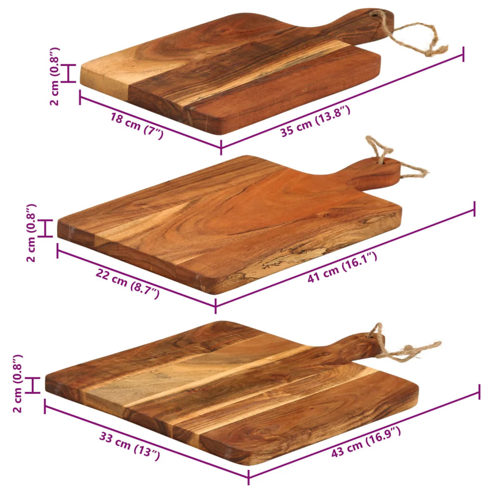 vidaXL Schneidebrett 3 Stk. Massivholz Akazie