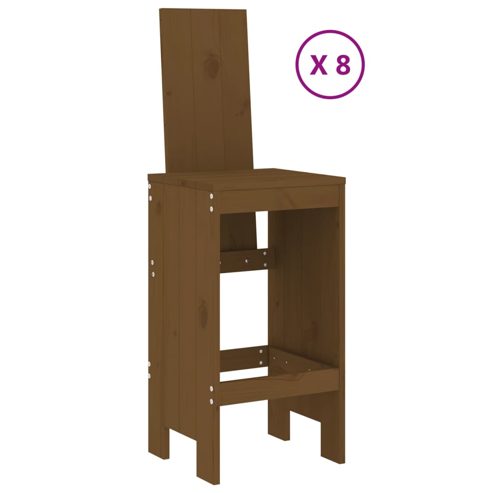 Genieße dein Lieblingsgetränk oder eine angenehme Mahlzeit mit Familie und Freunden an diesem Gartenbar-Set aus Holz! Massives Kiefernholz: Dieses Bar-Set ist aus massivem Kiefernholz gefertigt. Massives Kiefernholz ist ein wunderschönes Naturmaterial. Kiefernholz weist eine gerade Maserung auf und die Aststellen verleihen dem Material seine charakteristische, rustikale Optik.Robuste Tischplatte: Die robuste Tischplatte des Bartisches bietet den perfekten Platz für Getränke, Speisen oder einige Dekoartikel.Bequeme Sitzgelegenheit: Die Rückenlehne und die Fußstütze des Barhockers aus Holz sorgen für ein bequemes Sitzerlebnis, da du deinen Rücken und deine Beine entspannen kannst.Vielseitig einsetzbar: Mit seinem minimalistischen Design fügt sich das Terrassenbar-Set in jede Ecke des Gartens, der Terrasse, des Balkons, des Hinterhofs usw. harmonisch ein. Gut zu wissen:Damit deine Gartenmöbel lange schön bleiben, empfehlen wir dir, sie mit einer wasserdichten Hülle zu schützen. ** Farbe: Honigbraun ** Material: Massives Kiefernholz ** Abmessungen des Gartentisches: 203,5 x 90 x 110 cm (L x B x H) ** Abmessungen des Barhockers (pro Stück): 40 x 42 x 120 cm (L x B x H) ** Maximale Tragfähigkeit (pro Sitz ): 110 kg ** Zusammenbau erforderlich: Ja ** Lieferung umfasst: ** 1 x Gartentisch ** 8 x Barhocker Maximal 110 kg pro Sitzplatz.