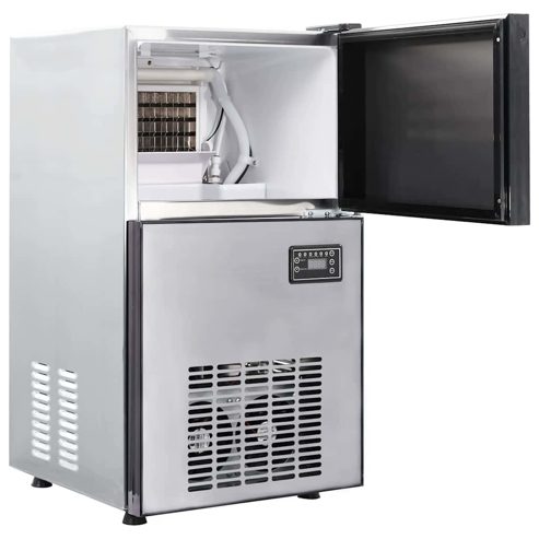 Diese moderne Eismaschine aus Edelstahl ist genau das Richtige für dich, wenn du deiner Küche oder Bar einen stylischen Touch geben möchtest. Sie verbindet Stil und Funktionalität und passt perfekt zu modernen Einrichtungsstilen. Egal, ob du gerne Gastgeber bist, viel kochst oder einfach immer frische Eiswürfel für Drinks oder Rezepte parat haben möchtest – diese Maschine bringt dir das Eis schnell und effizient. Mit ihrer kompakten Größe und dem modernen Technik-Setup bringt sie nicht nur eisige Erfrischung, sondern steigert auch die Atmosphäre in deinem Raum. Edelstahlgehäuse Hol dir dauerhafte Zuverlässigkeit mit einer Edelstahlfläche, die nicht nur schick aussieht, sondern auch hitzebeständig und leicht zu reinigen ist. Mit Edelstahl entscheidest du dich für ein Gerät, das für den regelmäßigen Einsatz in der Hektik deiner Küche gemacht ist. Effiziente Eisproduktion Produziere bis zu 12 kg Eis alle 24 Stunden – so bist du immer für jede Zusammenkunft oder spontane Events gewappnet. Seine schnelle und zuverlässige Leistung sorgt dafür, dass das Feiern einfacher wird und du immer genug Eis parat hast, um deine Drinks kühl zu halten und deine Gäste happy zu machen. Praktische UV-Lichter Die UV-Lichter verhindern, dass sich Bakterien ansammeln, sodass jede Eischarge immer rein und sicher bleibt. Diese zusätzliche Schutzschicht sorgt für Hygiene in deiner Küche, damit du beim Schaufeln des Eises ganz entspannt sein kannst. Schallabsorbierende Eigenschaften Freu dich über eine ruhige Wohnumgebung mit den schallabsorbierenden Eigenschaften der Eismaschine, die die Betriebsgeräusche stark dämpfen. So wird das Geräusch, das oft mit der Eisproduktion assoziiert ist, deine Gespräche nicht stören oder die Atmosphäre kaputt machen. Modernes Wassereinlasssystem Das intelligente Wassereinlasssystem ermöglicht ein müheloses Nachfüllen. Verbinde einfach die Eismaschine mit deinem bestehenden Wasseranschluss und schon läuft die Produktion automatisch weiter, sodass du nie wieder mit einer leeren Eisform dastehst. ** Farbe: Silber ** Material: Edelstahl ** Gesamtabmessungen: 43 x 40 x 71 cm (L x B x H) ** Gewicht: 21,9 kg ** Langlebig ** Schallabsorbierend ** Wassereinlasssystem ** UV-Lichter ** Schnelle Eisproduktion ** mit Tür ** Nur für den Innenbereich ** Lieferumfang: ** 1 x Eiswürfelbereiter