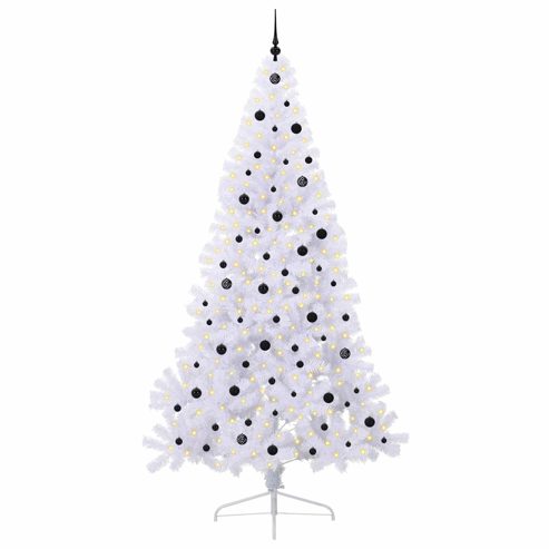 Dieser künstliche Weihnachtsbaum ist eine schicke Ergänzung für alle, die die Schönheit der festlichen Saison in traditionellen und modernen Umgebungen lieben. Mit einer Höhe von 240 cm ist der kegelförmige Baum schlicht und funktional und bietet eine minimalistische Silhouette, die die Aufmerksamkeit auf deine ausgewählten Ornamente lenkt. Sein moderner Stil passt zu vielen Deko-Themen und macht ihn zu einem vielseitigen Highlight für Wohnzimmer, Gärten oder Terrassen. Der Baum aus PVC ist robust und ideal für die saisonale Nutzung. Abriebfestes Material: Der Weihnachtsbaum ist aus einer Mischung aus PVC und Stahl gefertigt, was ihn langlebig und widerstandsfähig macht. Das PVC schützt den Baum hervorragend vor Abnutzung, sodass er auch nach vielen Feiern lebendig bleibt. Der stabile Stahlständer sorgt dafür, dass der Baum gut steht. Dynamische Beleuchtung: Der künstliche Weihnachtsbaum hat ein LED-Lichterketten-System, das ein spektakuläres, dynamisches Lichtmuster erzeugt. Die wechselnden Farben und Muster steigern die festliche Stimmung und schaffen eine lebendige Atmosphäre für Feiern. Die LED-Lichter sind energieeffizient und fesselnd und passen perfekt zu modernen Deko-Bedürfnissen. USB-Anschluss: Der Baum hat eine USB-Stromversorgung, die das Kabelsalat-Problem von normalen Steckdosen vermeidet. Er bietet einen universellen Anschluss, der die Nutzung vereinfacht und eine stetige Stromversorgung für die LED-Lichter gewährleistet. Diese moderne Lösung macht alles bequemer. Vielseitige Verwendung: Der Baum kann drinnen und in geschützten Außenbereichen verwendet werden und passt sich verschiedenen Umgebungen an. Sein modernes Design passt zu zeitgenössischen Stilen und macht ihn zur idealen Wahl für Wohnzimmer, Terrassen oder festliche Gartenbereiche. So bleibt die Atmosphäre an Feiertagen überall stimmig. Montage und Pflege: Der Aufbau des Baumes ist ganz einfach, wenn du die Anweisungen befolgst. Mit zwei Personen und einem Schraubendreher ist die Zusammenstellung schnell und stabil erledigt. Die Pflege könnte nicht einfacher sein: einfach gelegentlich mit einem trockenen Tuch abwischen, um das Aussehen zu bewahren, ganz ohne aggressive Chemikalien. ** Farbe: Weiß ** Material: PVC und Stahl ** Baumhöhe: 240 cm ** Durchmesser unten: 125 cm ** Langlebig ** Anzahl der PVC-Spitzen: 1050 ** Lichttyp: LED-Lichterketten ** Farbe der Lichter: Schwarz ** Anzahl der LEDs: 300 ** Abstand zwischen LEDs: 10 cm ** LED-Blitzmodi: 8 ** Stromquelle: USB ** Batterien inklusive: Nein ** Spannung: 5 ** Innen- / Außenbereich: Verwendung im Innenbereich und geschützten Außenbereich ** Montage erforderlich: Ja ** Lieferumfang: ** 1 x Weihnachtsbaum ** 1 x Ständer ** 1 x LED-Lichterkette