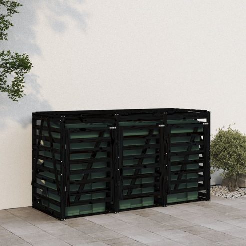 vidaXL Mülltonnenbox für 3 Tonnen Schwarz Massivholz Kiefer