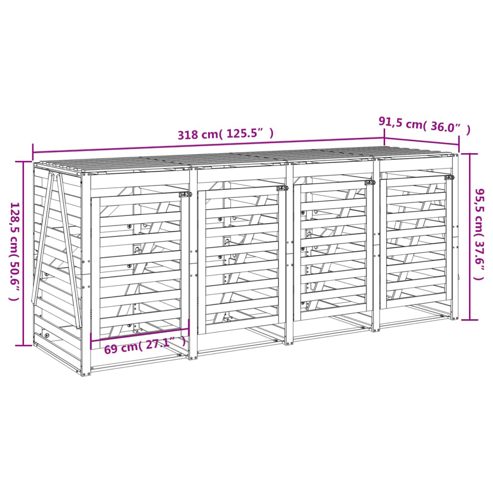 vidaXL Mülltonnenbox für 4 Tonnen Massivholz Kiefer