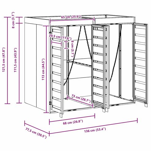 Die Mülltonnenaufbewahrung bietet eine schicke Lösung, um Abfallbehälter im Freien zu organisieren, ohne das Aussehen deines Gartens oder deiner Terrasse zu stören. Das moderne Design fügt sich perfekt in verschiedene Außenräume ein, und sie ist sowohl praktisch als auch gut aussehend. Für den Außeneinsatz gemacht, bleibt sie auch langfristig top in Schuss, während dein Raum ordentlich bleibt. Eine tolle Wahl für alle, die Wert auf Ordnung und Sauberkeit legen. Wasserabweisendes Material: Diese Mülltonnenaufbewahrung ist so gemacht, dass sie Regen und Sonne standhält, damit dein Müll trocken und sauber bleibt. Das UV-beständige Material sorgt dafür, dass die Farben und die Form auch bei jeder Witterung erhalten bleiben. Innovatives erweiterbares Design: Der Rahmen lässt sich wirklich ganz einfach anpassen, je nachdem, wie viele Mülltonnen du hast. Wenn du mehr Platz brauchst, kannst du ganz einfach andere Sektionen hinzufügen. Genial für wachsende Familien oder wenn du mehr Platz brauchst! Belüftetes Merkmal für Effizienz: Wegen der Belüftung bleibt die Luft gut zirkulieren, und das hilft, unangenehme Gerüche zu vermeiden. So bleibt alles hygienisch und angenehm, wenn du draußen bist. Stylisches modernes Design: Das moderne Design kombiniert einfache Linien mit Funktionalität. Es passt perfekt in jeden zeitgemäßen Garten oder jede Terrasse und macht alles noch schöner. Einfache Pflege & Wartung: Die Pflege ist ganz einfach; einfach mal mit einem feuchten Tuch drüberwischen, und schon sieht alles wieder neu aus. Mit diesem praktischen Zubehör wird alles noch einfacher und schöner für alle, die auf Nützlichkeit und schönes Aussehen Wert legen. ** Farbe: Anthrazit ** Material: Stahl ** Gesamtabmessungen: 136 x 77,5 x 121,5 cm (B x T x H) ** Erweiterbar ** Belüftetes Design ** Geeignet für Standardmülltonnen mit einem Volumen von 120 L oder 240 L ** Magnettüren ** Pflanzdach mit Ablauföffnungen ** Innendimensionen (jeweils): 65 x 73 x 113 cm (B x T x H) ** Innen- / Außenbereich: Nur für den Außenbereich ** Lieferumfang: ** 1 x Rollcontainer Aufbewahrung ** Montage erforderlich: Ja