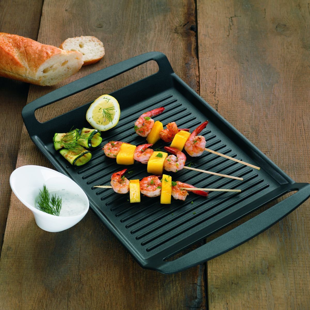 Fleisch, Fisch oder Gemüse, mit der Grillplatte Kerros braten Sie mit reduziertem Fett und Öl. Eine GREBLON C3+ Beschichtung sorgt dafür, dass Ihr Bratgut nicht kleben bleibt. So macht Grillen auch im Winter Spaß!