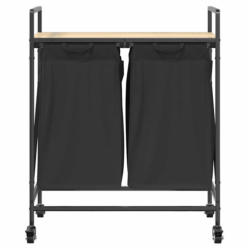 vidaXL Wäschekorb 2 Fächer mit Rollen Sonoma Eiche