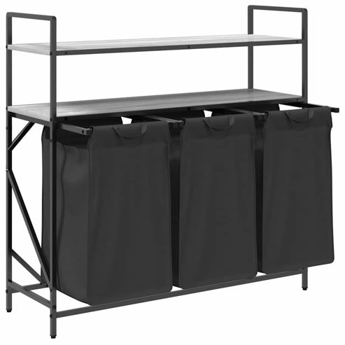 vidaXL Wäschekorb 3 Fächer mit Ablagen Grau Sonoma