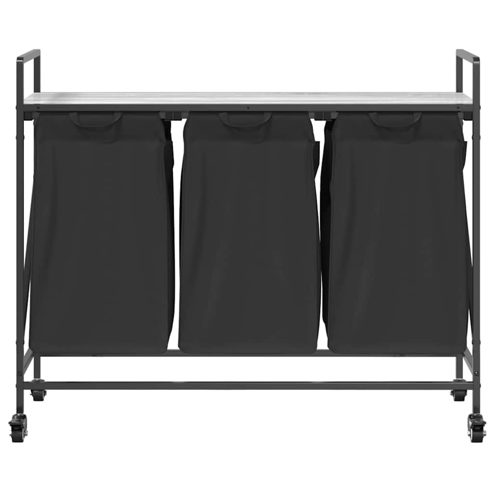 vidaXL Wäschekorb 3 Fächer mit Rollen Grau Sonoma