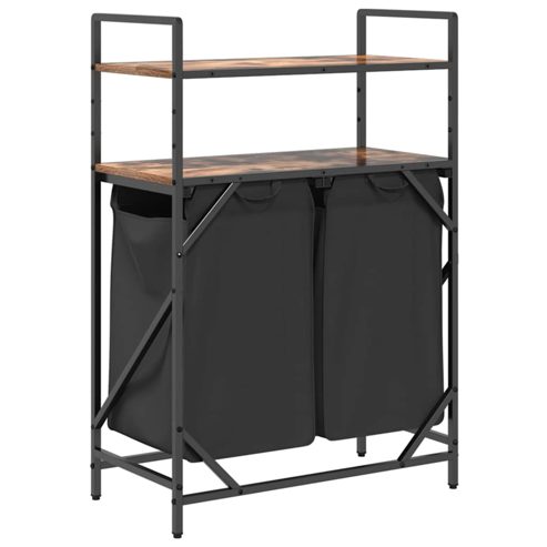 vidaXL Wäschekorb 2 Fächer mit Ablagen Räuchereiche