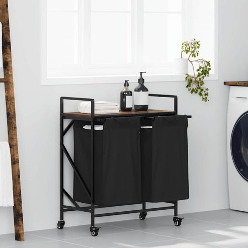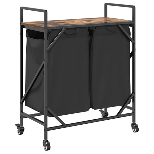 vidaXL Wäschekorb 2 Fächer mit Rollen Räuchereiche