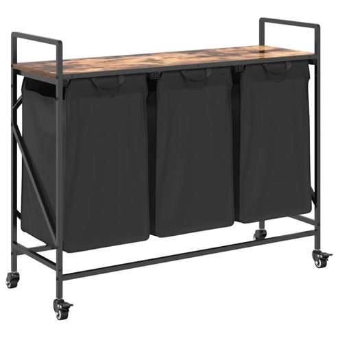 vidaXL Wäschekorb 3 Fächer mit Rollen Räuchereiche