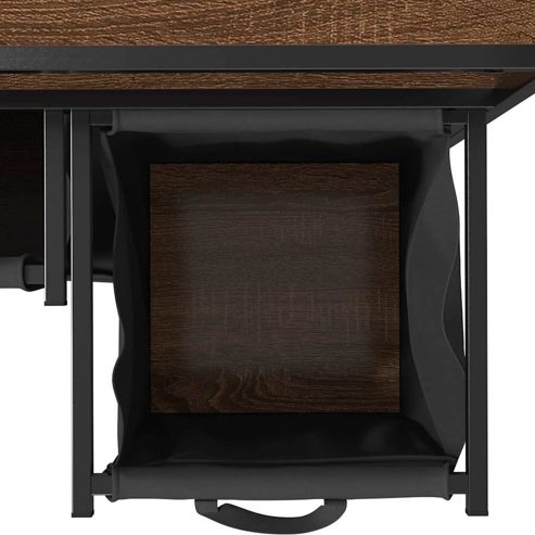 Der Wäschekorb bietet eine geräumige und praktische Aufbewahrungslösung mit herausziehbaren Beuteln, die das Ordnen Ihrer Wäsche mühelos machen. Wäschesortierer: Dieser Organizer bietet Platz für eine großzügige Wäscheladung pro Beutel und hilft dabei, Kleidungsstücke nach Farbe oder Stoffart zu sortieren, einen aufgeräumten Wäschebereich zu erhalten und auch Spielzeug und mehr aufzubewahren.Praktische herausziehbare Wäschebeutel: Die herausnehmbaren Wäschebeutel sind mit ausziehbaren Griffen und Klettverschlüssen zum einfachen Abnehmen und Herausziehen ausgestattet. Die verstärkten Bodenplatten helfen, die Form der Beutel zu erhalten und ein Durchhängen zu verhindern.Robuste und langlebige Struktur: Dieser Wäschekorb kombiniert einen Stahlrahmen mit langlebigem Holzwerkstoff und bietet so hervorragende Festigkeit, Verschleißfestigkeit und Stabilität.Obere Ablagefläche: Der Wäschekorb verfügt über zusätzliche Ablagen und bietet so eine praktische Lösung, um Ihre wichtigsten Dinge griffbereit zu haben. Perfekt zur Aufbewahrung von Toilettenartikeln, Waschmitteln, Weichspülern oder sogar Dekorationsartikeln.Vielseitig und multifunktional: Dieses Regal ist perfekt für die Waschküche, das Badezimmer oder das Schlafzimmer geeignet und verbindet nahtlos Funktionalität mit Stil. So bleibt Ihr Zuhause ordentlich und organisiert und passt gleichzeitig zu verschiedenen Einrichtungsstilen. Warnung:Um ein Umkippen zu verhindern, muss dieses Produkt mit der mitgelieferten Wandhalterung verwendet werden. ** Rahmenfarbe: Schwarz ** Regalfarbe: Brauneiche ** Wäschesackfarbe: Schwarz ** Rahmenmaterial: Stahl ** Regalmaterial: Holzwerkstoff ** Wäschesackmaterial: Stoff (100 % Polyester) ** Gesamtmaße: 67 x 33 x 97 cm (B x T x H) ** Wäschesackmaße (jeweils): 29,5 x 29,5 x 52,5 cm (B x T x H) ** Maximale Gesamttragkraft: 40 kg ** Max. Tragkraft pro Regal: 20 kg ** Max. Tragkraft pro Wäschesack: 5 kg ** Jeder Wäschesack verfügt über eine Bodenplatte zur Stabilisierung ** Montage erforderlich: Ja ** Lieferumfang: ** 2 x Wäschesack ** 2 x Bodenplatte ** 2 x Regal ** Wäschekorbrahmen ** Montagezubehör