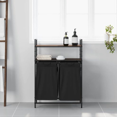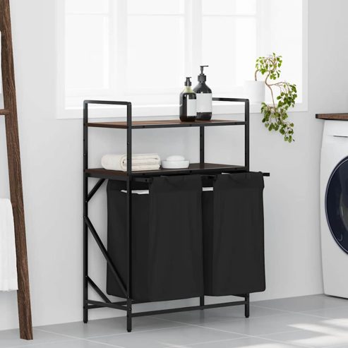 vidaXL Wäschekorb 2 Fächer mit Ablagen Braune Eiche