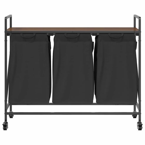 vidaXL Wäschekorb 3 Fächer mit Rollen Braune Eiche