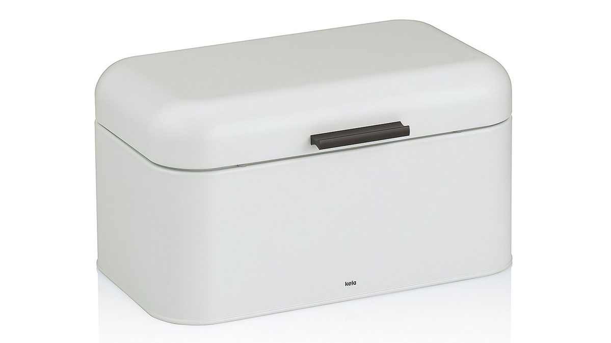 Dieser kompakte und stilvolle Brotkasten Frisca mit einer Länge von 30 cm hält Ihr Brot länger frisch und fügt sich perfekt in jede Küche ein. Dank der clever platzierten Luftlöcher an der Rückseite des Deckels bleibt die Luftzirkulation optimal, während die rutschfesten Gummifüße für einen sicheren Stand sorgen. Der Deckel schließt durch Gumminoppen besonders leise und sorgt für eine angenehme Handhabung. Erhältlich in modernen Trendfarben, lässt sich der Brotkasten ideal mit weiteren Accessoires von kela kombinieren – für eine harmonische und funktionale Kücheneinrichtung. Farbe: weiß. Abmessungen ca. 30 x 17 x 18 cm (BxHxT)