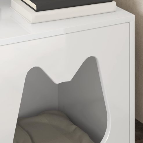 Das moderne Katzenhaus ist eine stylische und praktische Ergänzung für den Lebensraum deines Haustiers. Aus Holzwerkstoffen gemacht, bietet dieses rechteckige Katzenhaus drinnen einen gemütlichen Rückzugsort für deinen pelzigen Freund. Mit seinem modernen Style, der sich durch Einfachheit und klare Linien auszeichnet, passt das Katzenhaus perfekt in jedes zeitgenössische Wohnzimmer und sorgt in den kalten Monaten für einen warmen, einladenden Platz für Katzen. Holzwerkstoff: Das Katzenhaus besteht aus stabilem Holzwerkstoff, der für Langlebigkeit bekannt ist und somit eine zuverlässige Wahl für viele Jahre bietet. Die glatte Oberfläche sieht nicht nur gut aus, sondern ergänzt auch die Inneneinrichtung, während es einen sicheren Platz für Katzen zum Kuscheln oder Spielen bietet, ohne die Sorge um schädliche Chemikalien und zerbrechliche Teile. Enthaltene Komponenten: geliefert wird mit einem Katzenhaus und einem kompletten Montagezubehör-Set, damit du alles hast, was notwendig ist, um das perfekte Katzenparadies einzurichten. Dieses Paket sorgt dafür, dass der neue Platz deiner Katze komplett ist und sowohl Komfort als auch Stil mit minimalem Aufwand bietet. Funktionales Design: die rechteckige Form misst 42,5 x 40 x 52,5 cm und bietet ein kompaktes, aber großzügiges Design, das sich gut in Wohnzimmer oder jeden Innenraum integriert. Perfekt für Hauskatzen, um entspannt zu sein, zu ruhen oder ihre Umgebung zu beobachten, während sie sich sicher in ihrem eigenen kleinen Zuhause fühlen. Saisonalen Komfort: das Katzenhaus wurde speziell für Herbst- und Wintermonate entwickelt und sorgt für Wärme und Gemütlichkeit. Die Holzwerkstoff-Konstruktion bietet nötige Isolation, damit es in der kalten Jahreszeit ein einladender Ort wird, wo dein Haustier gemütlich und zufrieden ist. Einfache Pflege: die Wartung ist leicht, einfach abwischen mit einem trockenen Tuch genügt, um das Katzenhaus in gutem Zustand zu halten. Damit wird die Reinigung kinderleicht und bietet viel beschäftigten Tierbesitzern einen echten Vorteil. ** Farbe: Glänzend Weiß ** Material: Holzwerkstoff ** Gesamtabmessungen: 42,5 x 40 x 53,5 cm (L x B x H) ** Langlebig ** Max. Gewicht: 60 kg ** Nur für den Innenbereich ** Lieferumfang: ** 1 x Katzenhaus ** 1 x Set mit Montages Zubehör ** Montage erforderlich: Ja