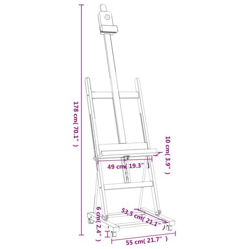 Diese Staffelei aus Holz ist ein guter Helfer beim Malen und eignet sich perfekt für Künstler, Studenten, Profis und Amateure! Verstellbare Höhe und Winkel: Die Höhe lässt sich durch Drehen der Schraube verstellen. So eignet sich die Staffelei für Leinwände mit einer Höhe von bis zu 105 cm. Zudem kannst du den Winkel des Malständers auch verstellen, um bequem aus verschiedenen Winkeln zu malen. Robustes Material: Massives Buchenholz ist ein schönes Naturmaterial. Buchenholz weist eine gerade Maserung auf und ist sehr langlebig. Aus massivem Buchenholz gefertigt, ist diese Malstaffelei robust und stabil. Breite Anwendungen: Diese Kunststaffelei eignet sich perfekt zum Malen und Präsentieren deiner Kunstwerke. Darauf können auch Bilder bei verschiedenen Anlässen wie Hochzeiten, Feiern, in Supermärkten, Museen, Restaurants, bei Kunstausstellungen und mehr zur Schau gestellt werden.Einfacher Transport: Dank des geringen Gewichts und der Rollen lässt sich die Staffelei mühelos umher verschieben. ** Material: Massives Buchenholz (unbehandelt) ** Gesamtabmessungen: 55 x 53,5 x 178 cm (L x B x H) ** Maximale Höhe der Leinwand: 105 cm ** Zusammenbau erforderlich: Ja