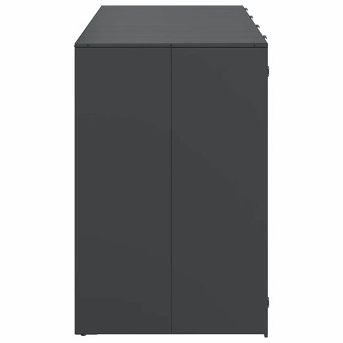 Die Mülltonnenaufbewahrung bietet eine schicke Lösung, um Abfallbehälter im Freien zu organisieren, ohne das Aussehen deines Gartens oder deiner Terrasse zu stören. Das moderne Design fügt sich perfekt in verschiedene Außenräume ein, und sie ist sowohl praktisch als auch gut aussehend. Für den Außeneinsatz gemacht, bleibt sie auch langfristig top in Schuss, während dein Raum ordentlich bleibt. Eine tolle Wahl für alle, die Wert auf Ordnung und Sauberkeit legen. Wasserabweisendes Material: Diese Mülltonnenaufbewahrung ist so gemacht, dass sie Regen und Sonne standhält, damit dein Müll trocken und sauber bleibt. Das UV-beständige Material sorgt dafür, dass die Farben und die Form auch bei jeder Witterung erhalten bleiben. Innovatives erweiterbares Design: Der Rahmen lässt sich wirklich ganz einfach anpassen, je nachdem, wie viele Mülltonnen du hast. Wenn du mehr Platz brauchst, kannst du ganz einfach andere Sektionen hinzufügen. Genial für wachsende Familien oder wenn du mehr Platz brauchst! Belüftetes Merkmal für Effizienz: Wegen der Belüftung bleibt die Luft gut zirkulieren, und das hilft, unangenehme Gerüche zu vermeiden. So bleibt alles hygienisch und angenehm, wenn du draußen bist. Stylisches modernes Design: Das moderne Design kombiniert einfache Linien mit Funktionalität. Es passt perfekt in jeden zeitgemäßen Garten oder jede Terrasse und macht alles noch schöner. Einfache Pflege & Wartung: Die Pflege ist ganz einfach; einfach mal mit einem feuchten Tuch drüberwischen, und schon sieht alles wieder neu aus. Mit diesem praktischen Zubehör wird alles noch einfacher und schöner für alle, die auf Nützlichkeit und schönes Aussehen Wert legen. ** Farbe: Anthrazit ** Material: Stahl ** Gesamtabmessungen: 272 x 77,5 x 115,5 cm (B x T x H) ** Erweiterbar ** Belüftetes Design ** Geeignet für Standardmülltonnen mit einem Volumen von 120 L oder 240 L ** Magnettüren ** Gasdruckdeckel mit einem Bungee-Seil ** Innendimensionen (jeweils): 65 x 73 x 113 cm (B x T x H) ** Innen- / Außenbereich: Nur für den Außenbereich ** Lieferumfang: ** 1 x Rollcontainer Aufbewahrung ** Montage erforderlich: Ja