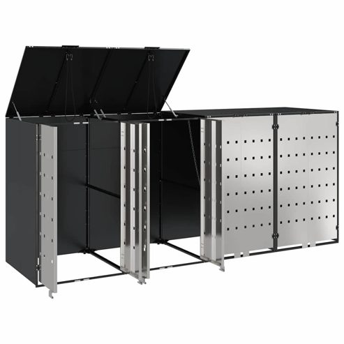 vidaXL Wagenmüllbehälter für 3 Behälter Anthrazit