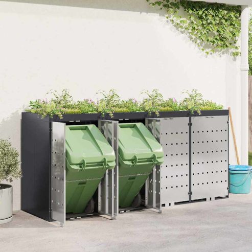 vidaXL Wagenmüllbehälter für 3 Behälter Anthrazit