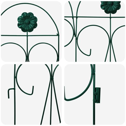 Dieser moderne Gartenzaun verbindet Style und Funktionalität und bringt eine luftige Atmosphäre in deinen Außenbereich. Mit seinem rustikalen Charme sorgt er dafür, dass er perfekt in Gärten und auf Terrassen integriert ist, während das rechteckige Spalierdesign einen tollen Hintergrund für Outdoor-Veranstaltungen bietet. Er eignet sich super für draußen, und die glatte, undurchsichtige Textur sieht nicht nur gut aus, sondern ist auch langlebig. Dekorative Intarsien und die spezielle Beschichtung geben ihm eine elegante Note, ideal für Hausbesitzer, die ihren Garten aufpeppen wollen. Robuste Eisenstruktur Hergestellt aus langlebigem Eisen, bietet dieser Gartenzaun die perfekte Mischung aus Stabilität und Style. Der Eisenrahmen ist eine starke Barriere und hat gleichzeitig einen beliebten rustikalen Charme, der gut zu verschiedenen Gartenstilen passt. Zudem sorgt das Design für Stabilität und eine lange Lebensdauer, sogar bei schlechtem Wetter. Eleganter Vliesstoff Der zusätzlich verwendete Vliesstoff trägt zum schickeren Aussehen des Zauns bei und hat auch praktische Vorteile. Diese Schicht verbessert die Optik des Zauns und macht ihn widerstandsfähiger gegen Witterungseinflüsse. Seine glatte Oberfläche erfordert wenig Pflege und verbindet Schönheit mit Nutzerfreundlichkeit für Gartenfreunde, die ihren Außenbereich gestalten wollen. Dekoratives Spaliermuster Das auffällige Spalierdesign ist ein echter Hingucker und ist ordentlich in die Zaunstruktur integriert. Dieser offene Rahmen ermöglicht es Pflanzen, elegant hindurchzuwachsen und schafft eine grüne Kulisse, die Leben und Tiefe in deinen Terrassen- und Gartenbereich bringt. Rustikale Ästhetik Dieser Zaun, der mit rustikalem Charme designt ist, feiert die natürliche Schönheit. Seine ästhetische Qualität macht ihn zum Highlight, das deinen Garten zu einer stilvollen Oase verwandelt. Der rustikale Akzent ist ideal für alle, die Außenbereiche suchen, die echt und organisch wirken sollen. Einfache Wartung Die Pflege des Zauns ist easy. Folge den Pflegehinweisen, bürste den trockenen Schmutz einfach ab und wische ab und zu mit einem feuchten Tuch drüber, um ihn sauber zu halten. Diese unkomplizierte Wartung sorgt dafür, dass er lange schön und funktional bleibt. ** Farbe: Grün ** Oberfläche: Angestrichen ** Gesamtabmessungen: 305,5 x 55,5 x 0,3 cm (L x B x H) ** Dekorative Intarsien ** Nur für den Außenbereich