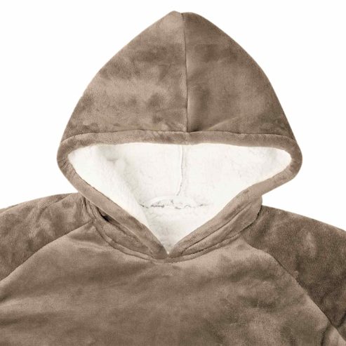 Dieser weiche Decken-Hoodie ist der Inbegriff von gemütlicher Wintermode, perfekt für entspannte Stunden drinnen in der kühlen Jahreszeit. Das oversized Design aus einer luxuriösen Fleece-Flanell-Mischung gibt dir eine sanfte Umarmung. Seine durchdachte Passform macht ihn ideal, um einen gemütlichen Abend auf der Couch zu verbringen, friedlich im Wohnzimmer zu lesen oder sogar als praktisches Kleidungsstück im Schlafzimmer. Material mit weicher Berührung: Dieser Decken-Hoodie aus einer kuscheligen Mischung aus Fleece und Flanell fühlt sich fantastisch auf der Haut an und bietet hohes Maß an Komfort. Der Stoff hält dich warm, ohne schwer zu sein, und sorgt für ein leichtes Gefühl, das beim Entspannen drinnen im Winter einfach klasse ist. Extra warme Kapuze: Die Kapuze bietet Wärme und Schutz für Kopf und Nacken. Ob beim Schlürfen eines heißen Getränks oder beim Lesen eines Buches, die Kapuze garantiert kuschelige Wärme und hüllt dich von Kopf bis Fuß ein. Praktische Tasche: Die Tasche ist super platziert und ermöglicht einfachen Zugriff auf dein Handy oder die Fernbedienung, ohne dass du deinen gemütlichen Platz verlassen musst. So wird der Hoodie noch funktionaler und sorgt für Komfort in deinen Entspannungsmomenten. Tragbares Design: Leicht und einfach zu transportieren, begleitet dich der Decken-Hoodie von Raum zu Raum und spendet dir überall Wärme. Beweg dich mühelos, während du das durchgehende warm und kuschelige Feeling genießen kannst. Einfache Pflege: Die Pflege deines Hoodies ist kinderleicht. Vermeide aggressive Chemikalien und Abrasive beim Waschen, damit der Stoff weich und lebendig bleibt. So kannst du seine Wärme ohne Sorgen genießen. ** Farbe: Kamel ** Material: Fleece und Flanell ** Gesamtabmessungen: 112 x 94 cm (L x B) ** Gewicht: 1,43 kg ** Leichtes Gewicht ** Tragbar ** Langlebig ** Praktische Taschen ** Extra-warmer Kapuze ** Einfache Pflege ** Innen- / Außenbereich: Nur für den Innenbereich ** Lieferumfang: ** 1 x Decken-Hoodie