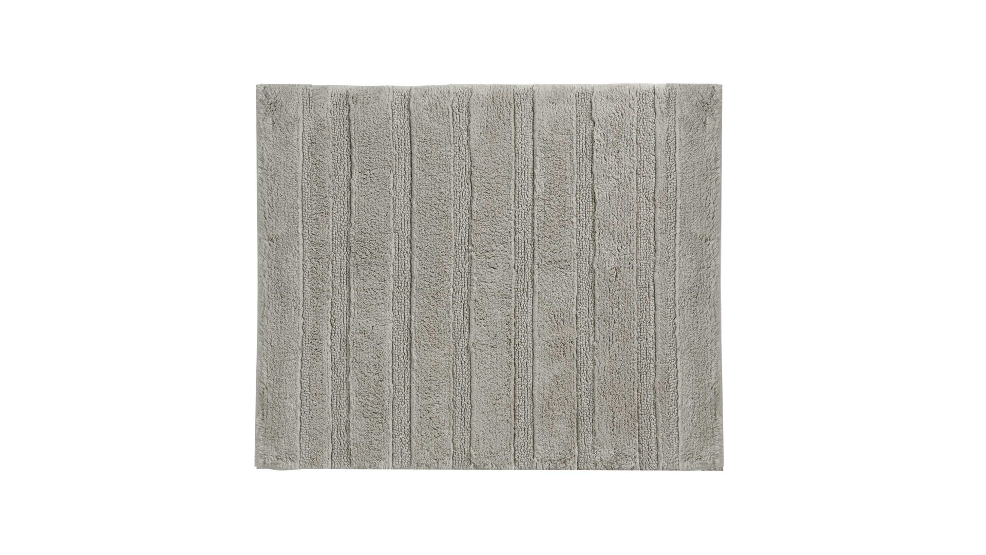 kela Badematte Megan | silbergraue Baumwolle | 100 % recycelte Baumwolle | ca. 0,8 cm bzw. 1,6 cm Florhöhe | rutschhemmende Unterseite | Fußbodenheizungen geeignet | bis 30 Grad waschbar | bei niedriger Temperatur trocknergeeignet | Maße ca. 65 x 0,8 bzw. 1,6 x 55 cm (LxHxB) | in vielen Farben und Größen bestellbar