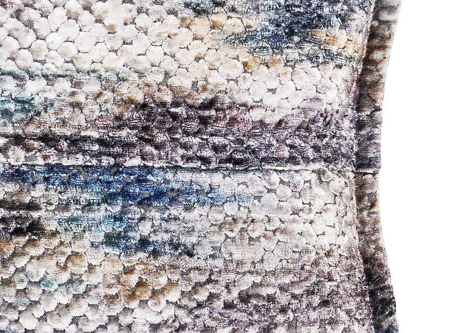 Weich und anschmiegsam ist der Kissenbezug aus blau gemustertem Samt und ein frischer Hingucker auf Ihrem Sofa. Dekorieren Sie den edlen Kissenbezug entweder alleine oder gleich zu mehreren nebeneinander. Das beidseitige Samtgewebe des Bezugs besteht aus pflegeleichter Kunstfaser und ist bis 30 Grad waschbar. Mit dem verdeckten Reißverschluss können Sie den Bezug ganz leicht abziehen und nach der Wäsche auf links und auf niedriger Stufe bügeln.