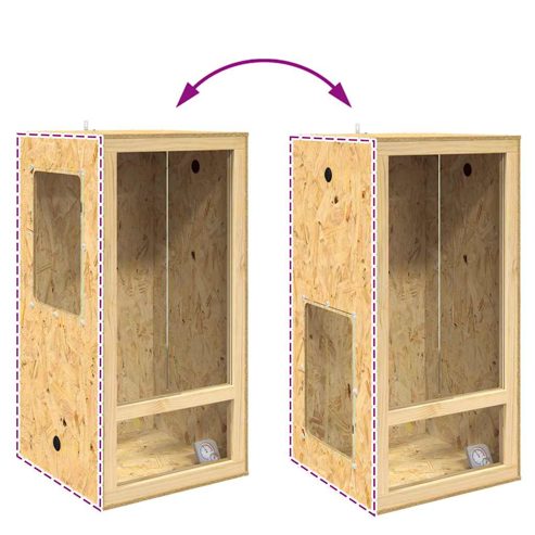 Dieses OSB-Terrarium ist ein ideales quadratisches Gehege, das für Reptilien und Amphibien entwickelt wurde und eine perfekte Kombination aus Funktionalität und rustikaler Ästhetik bietet. Die Verbindung aus OSB-Platten und robustem Glas sorgt für Sichtbarkeit und Sicherheit, was es zu einer tollen Wahl für ein Innenhabitat für Reptilien macht. Premium Materialien: Das Terrarium aus hochwertigem OSB ist langlebig und zuverlässig, ideal für die stärksten Reptilien. Das klare Glas sorgt für Übersicht und einen eleganten Look, was es einfacher macht, die Tiere zu beobachten. Inklusive Komponenten: Mit dem eingebauten Thermometer lässt sich die Temperatur einfach und genau überwachen, damit sich dein Haustier wohlfühlt. Das ist praktisch und hilft, einen gesunden Lebensraum zu schaffen. Robuste Eigenschaften: Die starke Bauweise sorgt dafür, dass deine Haustiere ein sicheres Zuhause haben. Ideal für lebhafte Tiere, perfekt für Tierbesitzer, die Wert auf Langlebigkeit legen. Empfohlene Verwendungen: Ob Reptil, Nagetier oder Amphibie – das Terrarium eignet sich für viele Tiere und ermöglicht trockene, feuchte oder grüne Umgebungen, was es vielseitig macht. Pflege & Wartung: Die Pflege ist einfach – einfach mit einem feuchten Tuch abwischen. Die matte Oberfläche verhindert übermäßigen Schmutz, so bleibt alles unkompliziert und sauber. ** Farbe: Braun ** Material: OSB ** Oberfläche: Matt ** Gesamtabmessungen: 50 x 50 x 100 cm (L x B x H) ** Gewicht: 22,7 kg ** Langlebig ** Viel Platz ** Geeignet für verschiedene Reptilien Haustiere ** Vielseitig ** Innen- / Außenbereich: Nur für den Innenbereich ** Lieferumfang: ** 1 x Terrarium ** 1 x Thermometer ** Montage erforderlich: Ja