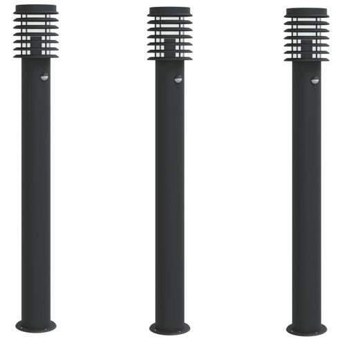 vidaXL Wegeleuchten mit Bewegungsmelder 3 Stk. Schwarz 110cm Edelstahl