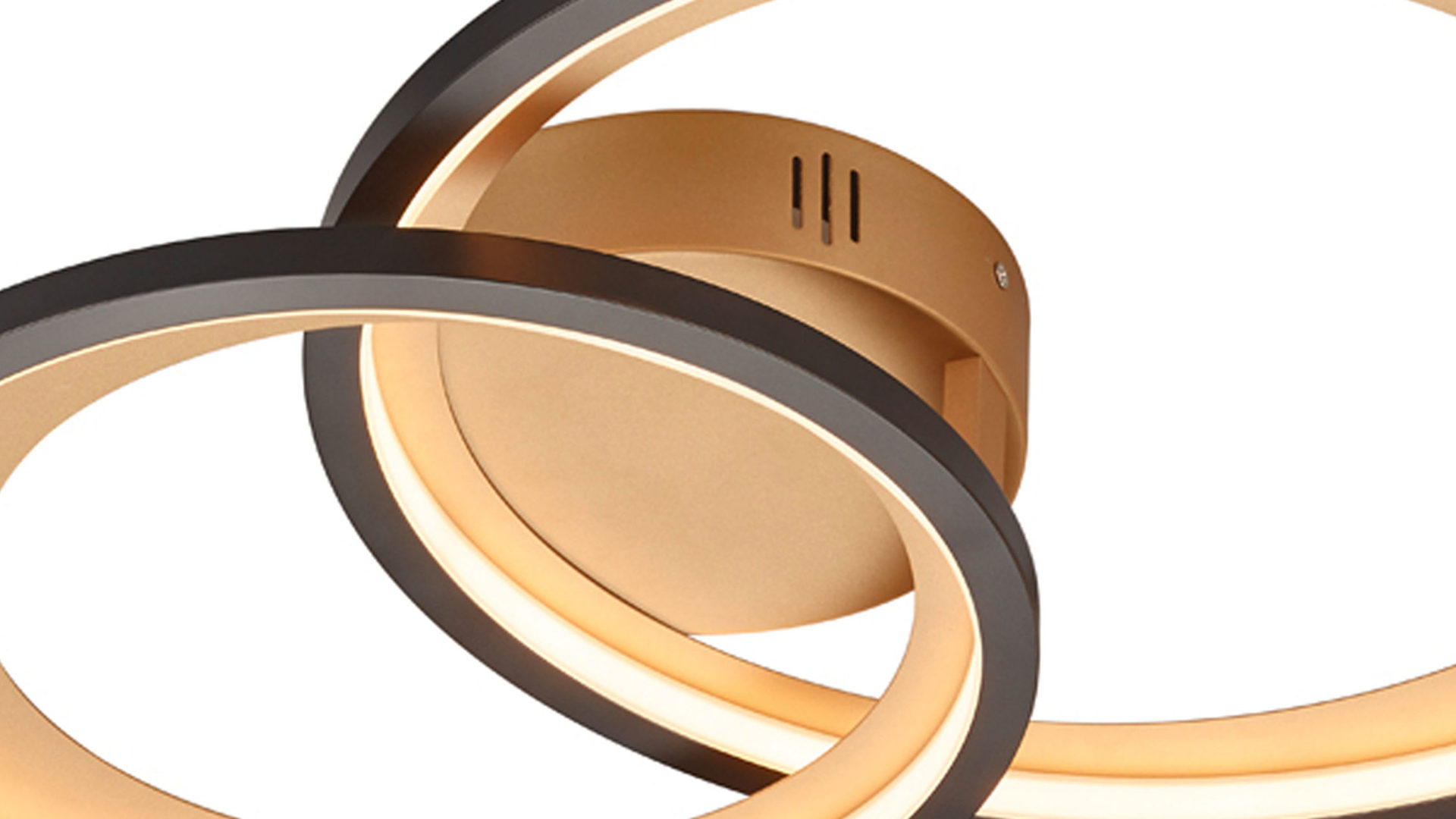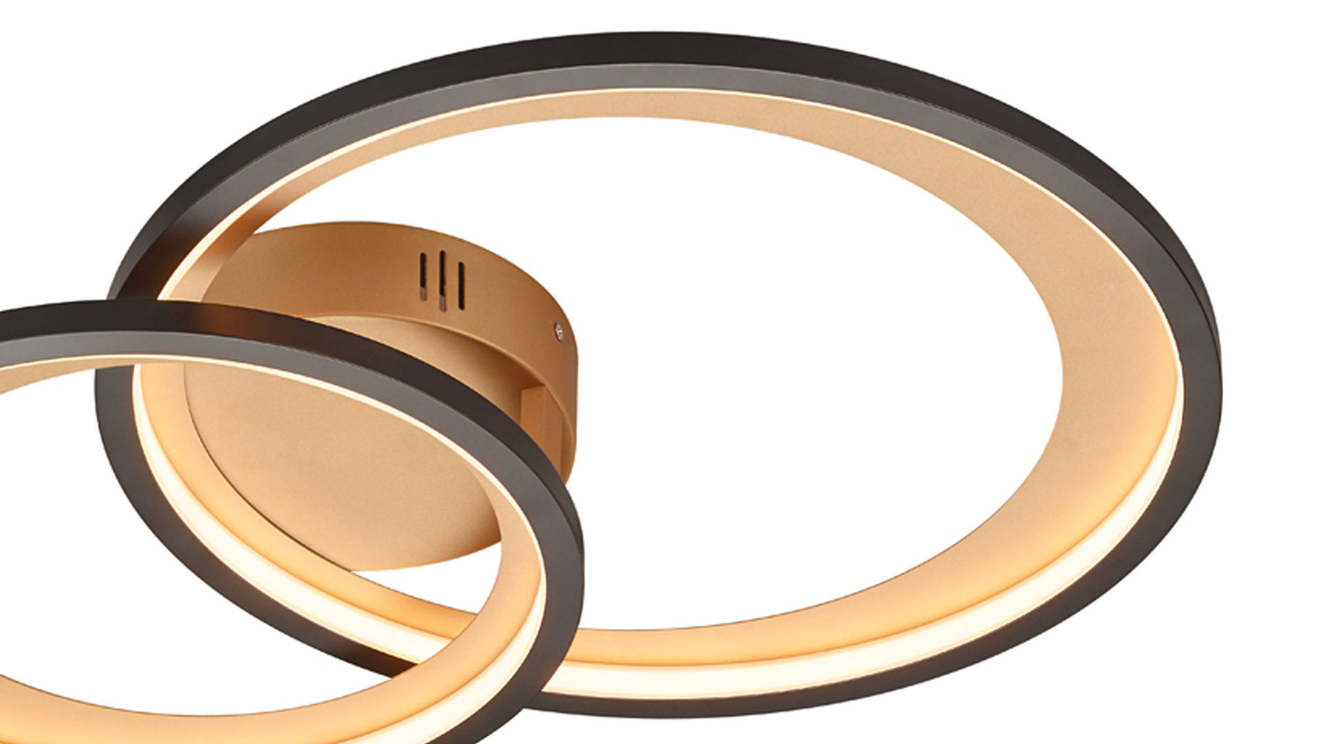 Die TRIO Deckenlampe Granada verbindet mattschwarzes und goldfarbenes Metall.