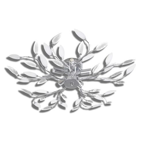 Deckenlampe transparente weiße Blätterranken mit Acryl-Blättern 5x E14