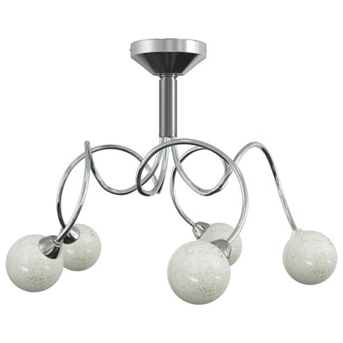 Diese einzigartige Deckenleuchte mit 5 runden Glasschirmen besticht durch ihr modernes Design und verleiht deinem Raum einen atemberaubenden Look. Verchromtes Material: Der gesamte Stahlsockel und die 5 verschlungenen Stahlrohre sind verchromt, sodass die Deckenleuchte auf eine lange Lebensdauer ausgelegt ist. Zudem sparst du so Zeit und Geld beim Wechseln der Lampe.G9-Fassung: Die elegante Deckenlampe ist mit 5 G9-Fassungen ausgestattet, wobei die maximale Wattzahl jeder Birne 40 Watt nicht überschreiten darf.LED-Leuchte: Durch die energiesparende LED-Technologie werden der Energieverbrauch und die Stromkosten verringert.Schöne Lampenschirme: Durch die zarten Glasschirme durchscheint wunderbares Licht, das jeden Winkel des Raumes beleuchtet. Hinweis:Zur einfachen Montage und Bedienung wird jedes Produkt mit einer Bedienungsanleitung in der Box geliefert. ** Farbe des Lampenschirms: Transparent ** Material: Stahl mit Chrombeschichtung, Glas ** Abmessungen: 52 x 34 cm (Durchmesser x H) ** Durchmesser des Lampenschirms: 8 cm ** Stromspannung 220-240V~ ** Frequenz: 50Hz ** Max. Leistung: 5 × 40 W ** Lampenfassung: G9 ** Lieferung umfasst: ** 1 x Deckenleuchte ** 5 x LED-Leuchtmittel Dieses Gerät ist nicht dafür bestimmt, von Personen (einschließlich Kindern) mit eingeschränkten physischen, sensorischen oder geistigen Fähigkeiten oder mangelnder Erfahrung und mangelndem Wissen benutzt zu werden, es sei denn, sie werden von einer für ihre Sicherheit verantwortlichen Person beaufsichtigt oder in der Benutzung des Geräts unterwiesen. Dieses Produkt ist kein Spielzeug. Erlaube Kindern nicht, mit dem Gerät zu spielen.