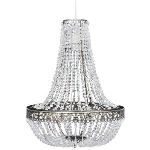 Mit seinem klassischen und eleganten Design ist dieser wunderschöne Kronleuchter ein Blickfang in jedem Raum und eignet sich sowohl für private als auch für gewerbliche Zwecke. Dank seines luxuriösen Designs findet dieser markante Kronleuchter den perfekten Platz in deinem Eingangsbereich, Esszimmer oder Wohnzimmer. Die hochwertigen Perlen glänzen und funkeln wie Sterne; sie fangen das Licht effektiv ein und reflektieren es, wobei das Lichtspektrum für ein grandioses Farbenspiel sorgt. Mit dieser eleganten Hängeleuchte kannst du dein Zuhause auf luxuriöse Weise dekorieren und erhellen. Das Leuchtmittel ist nicht im Lieferumfang enthalten. ** Stromspannung 220-240V~ ** Frequenz: 50/60 Hz ** Lampenschirmmaterial: Kunststoff ** Material des Gestells: Stahl ** Größe der Lampe: 36,5 x 46 cm (Φ x H) ** Kabellänge: 1,2 m ** Geeignet für E27-Glühbirne, max. Leistung 40 W (nicht im Lieferumfang enthalten) ** Der Lampensockel und das Kabel sind im Lieferumfang enthalten Dieses Gerät ist nicht dafür bestimmt, von Personen (einschließlich Kindern) mit eingeschränkten physischen, sensorischen oder geistigen Fähigkeiten oder mangelnder Erfahrung und mangelndem Wissen benutzt zu werden, es sei denn, sie werden von einer für ihre Sicherheit verantwortlichen Person beaufsichtigt oder in der Benutzung des Geräts unterwiesen. Dieses Produkt ist kein Spielzeug. Erlaube Kindern nicht, mit dem Gerät zu spielen.