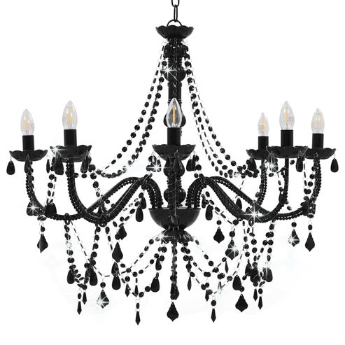 vidaXL Kronleuchter mit Perlen Schwarz 8 x E14-Fassungen